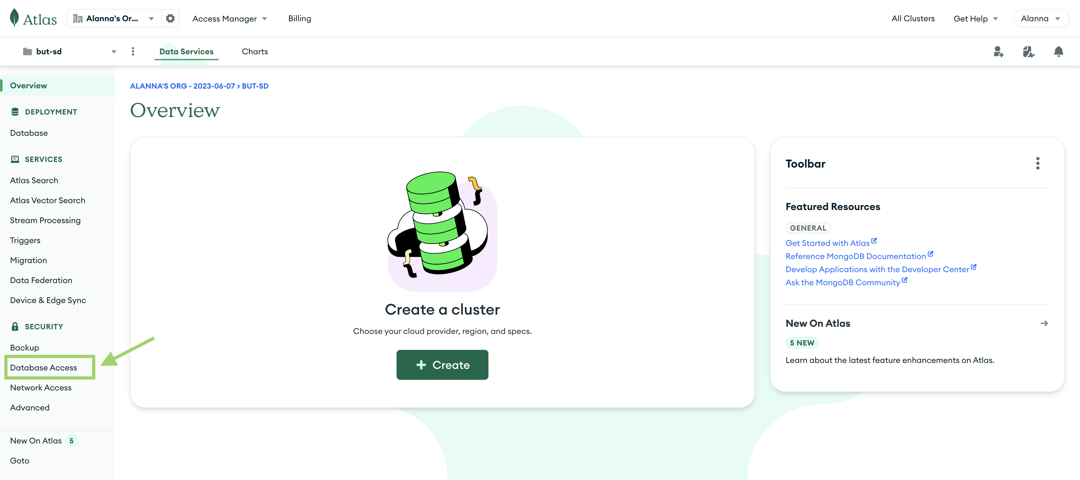 Création d’un cluster Atlas